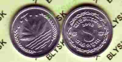BANGLADESZ /KM-5/ 1 POISHA 1974r.Stan Monety I/-I
