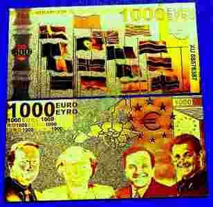 BANKNOT 1000 EURO W CZYSTYM ZŁOCIE- 24 KARAT !!!