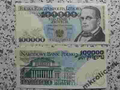 Banknot 100 000 zł 1990 r seria AL Piękny