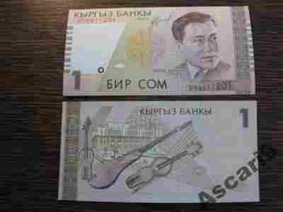 Banknot 1 Som 1999 Kirgistan UNC instrumenty
