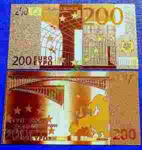 BANKNOT 200 EURO W CZYSTYM ZŁOCIE !!! 24 KARAT !!!