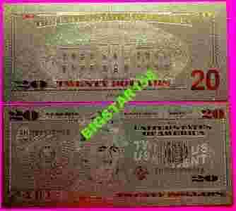 BANKNOT 20 $ USA W CZYSTYM ZŁOCIE!!! 24 KARAT !!!