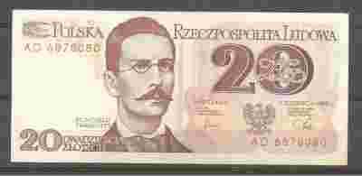 BANKNOT 20 ZŁ 1982 r SERIA AD . ŁADNY STAN.