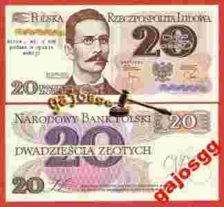 Banknot 20 zł 1982 serie AM stan UNC