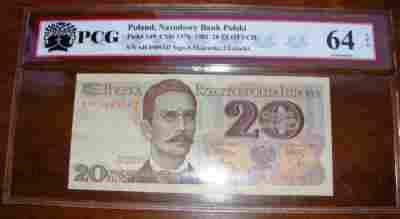 BANKNOT 20ZŁ 1982 GRADING UNC64 STAN I