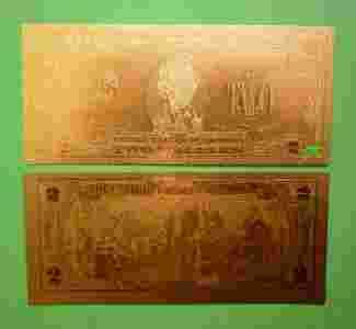 BANKNOT 2 DOLLARY W CZYSTYM ZŁOCIE ! 24 KARAT $ $