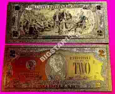 BANKNOT 2 $ USA W CZYSTYM ZŁOCIE!!! 24 KARATY !!!