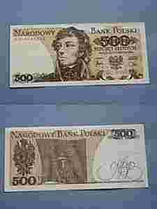Banknot 500 zł -seria DL lub GG z 1982 roku, UNC