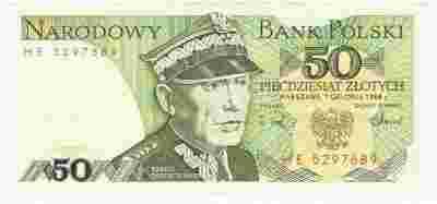 banknot 50 zł - 1988 r., seria HE, stan: XF/UNC