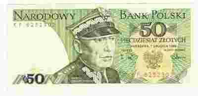 banknot 50 zł - 1988 r., seria KF, stan: -UNC