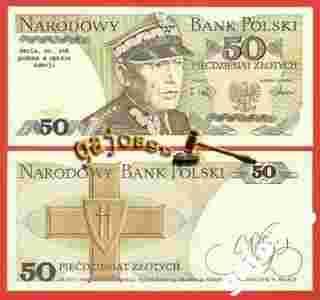 Banknot 50 zł 1988 serie KH stan UNC