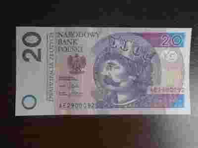 Banknot UNC 20zł RADAR AE[zasłonięte]29000