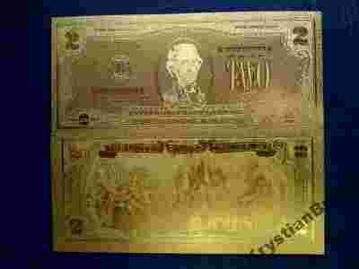 Banknot w ZŁOCIE 24 karat 2$-DOLARY