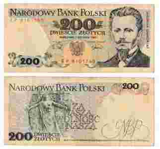 Banknot z PRL 200 złotych z 1988 roku BCM