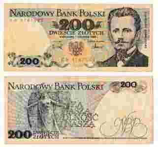 Banknot z PRL 200 złotych z 1988 roku BCM