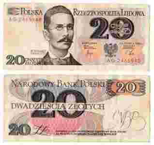 Banknot z PRL 20 złotych z 1982 roku BCM