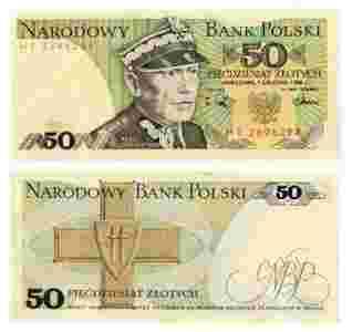 Banknot z PRL 50 złotych z 1988 roku UNC