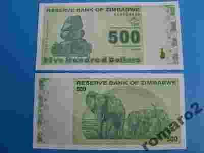 Banknot Zimbabwe 500 Dollars 2009 P-98 Słonie UNC