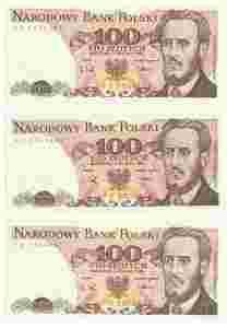 banknoty 100 zł - 1988 r., seria PU, stan: -UNC