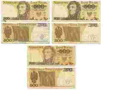 banknoty 500 zł (3 szt.)(1982 r. serie EN, FB, FS)