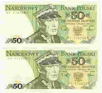 banknoty 50 zł - 1988 r., seria HF, stan: XF/UNC