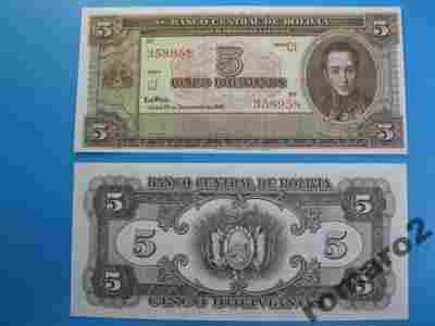 Banknoty Boliwia 5 Bolivianos P[zasłonięte]138 19 UNC