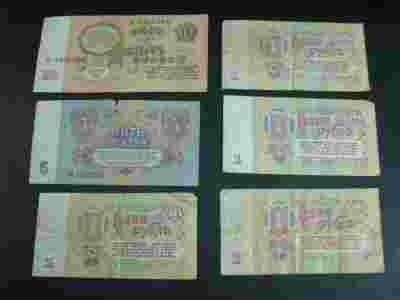 BANKNOTY CCCP 1,5,10 RUBLI 6SZT.