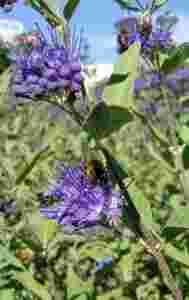 to krzew osiągający wysokość 60-70 cm, wymaga stanowiska słonecznego, gleby wilgotnej. Liście posiadają lekko szarawy nalot. Kwitnie od sierpnia, posiada piękne kwiaty w kolorze szafiru. Jest rośliną miododajną.