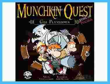 Pokonaj Potwory, zgarnij Skarby, wykiwaj kumpli. To sens Munchkina. Munchkin Quest przeniesie Cię do przerażających lochów, wyglądających podczas każdej rozgrywki inaczej.W grze współpracujesz z innymi graczami aby pokonać potwory i podzielić się ich bogactwem... albo podążasz samotną drogą by zatrzymać skarby dla siebie. Otwierając drzwi, dokładasz kolejny pokój do mapy i spotykasz nowego potwora. Pokonaj go lub uciekaj, ale uważaj: potwory mogą cię ścigać! Łatwo więc z myśliwego stać się ofiarą.Każdy pokój w lochach ma swoje specjalne zasady. Niektóre są dobre, inne złe, a niektóre zależne od typu twojej postaci. Część pokoi daje możliwość Handlu, albo pomogą ci się uleczyć. Nawet jeśli pokój nie daje bonusów, to zawsze możesz go przetrząsnąć w poszukiwaniu skarbów.Zgromadź magiczne przedmioty i złoto dla większej potęgi, ale nie zapominaj, że prawdziwym celem są...Poziomy! Zdobądź 10. Poziom postaci i spróbuj ujść z życiem. Będziesz jeszcze musiał przebić się przez ostatniego potwora władcę lochów, ale nie powinno to być dla Ciebie problemem.Przecież to tylko Potwór 20. Poziomu...Czas gry to ok. 120 minut.Zawartość pudełka:200 kolorowych kart,27 żetonów Zdrowia,69 żetonów Złota,12 znaczników upuszczonych przedmiotów,15 żetonów Ruchu,12 znaczników Przeszukiwania,4 Liczniki Poziomów,4 plastikowe figurki Munchkinów,12 podstawek dla Potworów,24 dwustronne plansze Pokojów,1 plansza Wejścia,73 Łączniki Drzwi i Ścian,38 kartonowych pionków Potworów,8 kości k6,1 kość k10,1 sześciokolorową Kość Potworów,20 stronnicowa Instrukcja.Gra przeznaczona: dla 2 do 4 graczy w wieku od 12 lat.
