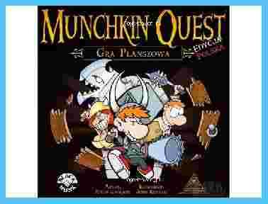 Pokonaj Potwory, zgarnij Skarby, wykiwaj kumpli. To sens Munchkina. Munchkin Quest przeniesie Cię do przerażających lochów, wyglądających podczas każdej rozgrywki inaczej.W grze współpracujesz z innymi graczami aby pokonać potwory i podzielić się ich bogactwem... albo podążasz samotną drogą by zatrzymać skarby dla siebie. Otwierając drzwi, dokładasz kolejny pokój do mapy i spotykasz nowego potwora. Pokonaj go lub uciekaj, ale uważaj: potwory mogą cię ścigać! Łatwo więc z myśliwego stać się ofiarą.Każdy pokój w lochach ma swoje specjalne zasady. Niektóre są dobre, inne złe, a niektóre zależne od typu twojej postaci. Część pokoi daje możliwość Handlu, albo pomogą ci się uleczyć. Nawet jeśli pokój nie daje bonusów, to zawsze możesz go przetrząsnąć w poszukiwaniu skarbów.Zgromadź magiczne przedmioty i złoto dla większej potęgi, ale nie zapominaj, że prawdziwym celem są...Poziomy! Zdobądź 10. Poziom postaci i spróbuj ujść z życiem. Będziesz jeszcze musiał przebić się przez ostatniego potwora władcę lochów, ale nie powinno to być dla Ciebie problemem.Przecież to tylko Potwór 20. Poziomu...Czas gry to ok. 120 minut.Zawartość pudełka:200 kolorowych kart,27 żetonów Zdrowia,69 żetonów Złota,12 znaczników upuszczonych przedmiotów,15 żetonów Ruchu,12 znaczników Przeszukiwania,4 Liczniki Poziomów,4 plastikowe figurki Munchkinów,12 podstawek dla Potworów,24 dwustronne plansze Pokojów,1 plansza Wejścia,73 Łączniki Drzwi i Ścian,38 kartonowych pionków Potworów,8 kości k6,1 kość k10,1 sześciokolorową Kość Potworów,20 stronnicowa Instrukcja.Gra przeznaczona: dla 2 do 4 graczy w wieku od 12 lat.