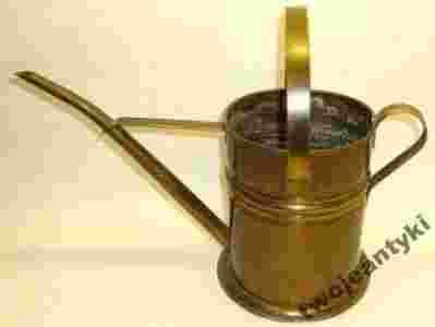 Bardzo ładna stara duża klimatyczna konewka polewaczka wykonana z mosiądzu. Można ją oczywiście wykorzystać do podlewania kwiatów zarówno do domu jak i małym ogródku. Równie dobrze może służyć jako donica do żywych kwiatów lub jako wazon do dużego bukietu kwiatów ciętych, można wykorzystać to naczynie do kompozycji z zasuszonych roślin – to są moje delikatne sugestie, lecz Twoja wyobraźnia w tym względzie jest nieograniczona. Konewka posiada już swoje lata, przedmiot okrył się jakże cenną patyną czasu i można go wyczyścić by lśnił jak nowy, ale i po co? To już będzie zależało od Ciebie.