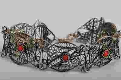BARDZO STARA BRANSOLETA SREBRNY FILIGRAN I KORALE