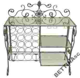 Barek posiada stojak na 20 butelek, zawieszkę na kieliszki jak również szklane blaty.