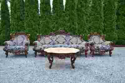 kanapa jak i fotele wykonane są z litego drewna ręcznie rzeźbionego;