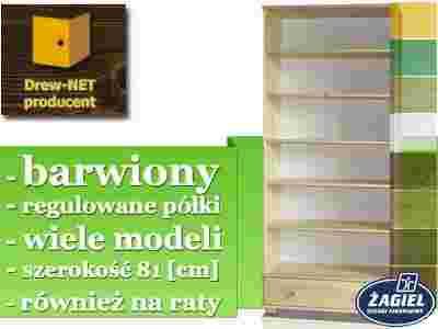 Barwiony regał 81 z 1/2 podstawki sosn. z Drew-Net