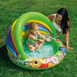 Dmuchany basenik ogrodowy przeznaczony dla najmłodszych użytkowników zabaw w wodzie. Wyprodukowany przez znaną firmę Intex, doskonale dopracowany i solidnie wykonany. Okrągły zbiornik z pięknymi grafikami z Kubusia Puchatka, wypełniony po brzegi z pluskającym się maluchem w środku, wygląda szczególnie urzekająco. W zestawie znajduje się łatka naprawcza.