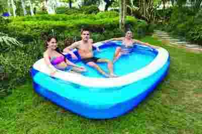 Basen ten wykonany jest z niebywale wytrzymałych tworzyw, odpornych na słońce, chemikalia i dzięki zastosowaniu grubego materiału - odpornemu na wycieranie. Nadmuchanie tego basenu, to kwestia kilku minut i nie wymaga żadnych specjalistycznych narzędzi, tym samym okres oczekiwania nie zniechęca do wodnej zabawy!