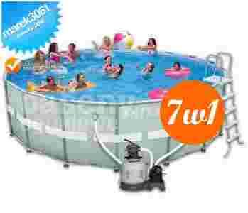 Prezentowany zestaw 7w1 wyprodukowany przez INTEX zawiera w sobie akcesoria, które zadbają o odpowiednie warunki do odpoczynku w wodzie. Basen stelażowy jest solidny, dzięki wytrzymałemu, trójwarstwowemu PVC jakie zastosowano podczas jego produkcji. Jego wymiary – 549 cm x 132 cm spokojnie pomieszczą kilka osób. Pewnie zastanawiasz się, jak skomplikowany musi być montaż tak dużego zbiornika. Zapewniamy, że z instrukcją dołączoną na płycie DVD nie poświęcisz na to więcej niż 45 minut.