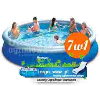 W zestawie poza basenem otrzymujesz pompę filtrująca Bestway o wydajności 2006 litrów/godz oraz kompatybilny z nią filtr. To podstawowy zestaw, służący do oczyszczania wody basenowej. W zestawie znajduje się też mata pod basen i pokrywa na basen, chemia basenowa i pływak, do jej rozprowadzania