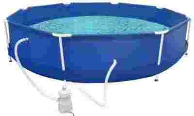 Okrągłe baseny na metalowym stelażu z pewnością można zaliczyć do modeli wytrzymałych i stabilnych.