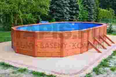 Basen ogrodowy o wymiarach: 914x457cm i wysokości 120 cm w okładzinie drewnianej ze świerku naturalnego