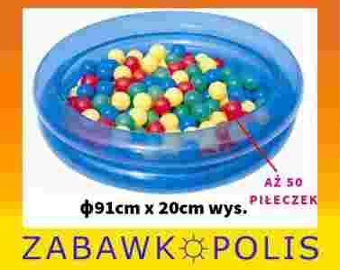 Zestaw zawiera dwupierścieniowy basen dmuchany oraz 50 piłek do zabawy.