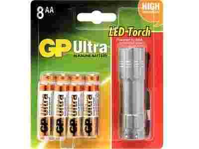 BATERIA ALKAICZNA AA LR6 1,5V 8SZT +LATARKA LED