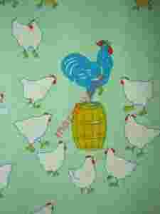 Bawełna w kurki i turkusowe koguciki