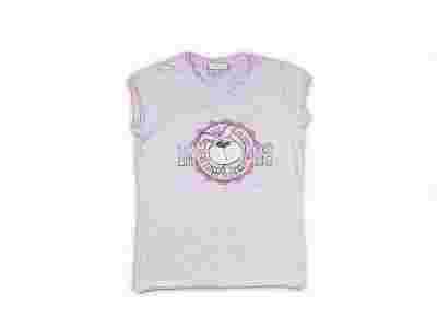 Bawełniana bluzka w szarym kolorze w stylu vintage, nadruk z przodu, imitacja bluzki pod spodem.