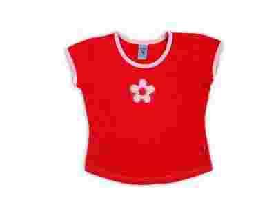 Bawełniana bluzka w czerownym kolorze z naszywaną aplikacją z koralikami.