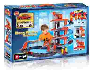Potężny oryginalny 4-poziomowy parking garaż MEGA DEALER SHOWROOM kultowej firmy BBURAGO, to w pełni wyposażony plac zabaw dla małego rajdowca. Wielopoziomowy parking z dodatkowym torem rajdowym, zawierającym wiele elementów ruchomych, co gwarantuje wyśmienitą, wielogodzinną oraz bezpieczną zabawę Twojego dziecka. Całość z wysokiej jakości tworzywa, wykonana z dbałością o każdy najdrobniejszy szczegół. Zestaw zawiera dwa oryginalne metalowe modele samochodów BBURAGO w skali 1:43 z kolecji STREET FIRE. Zestaw MEGA DEALER SHOWROOM jest kompatybilny z wszystkimi modelami samochodów BBURAGO oraz FERRARI w skali 1:43