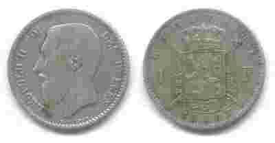Belgia - 1 Franc 1867 (Belges) Ag 835