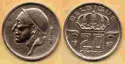 Belgia 20 Centimes - 1957r ... Monety