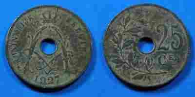 BELGIA, 25 CENTIMES 1927, ALBERT I